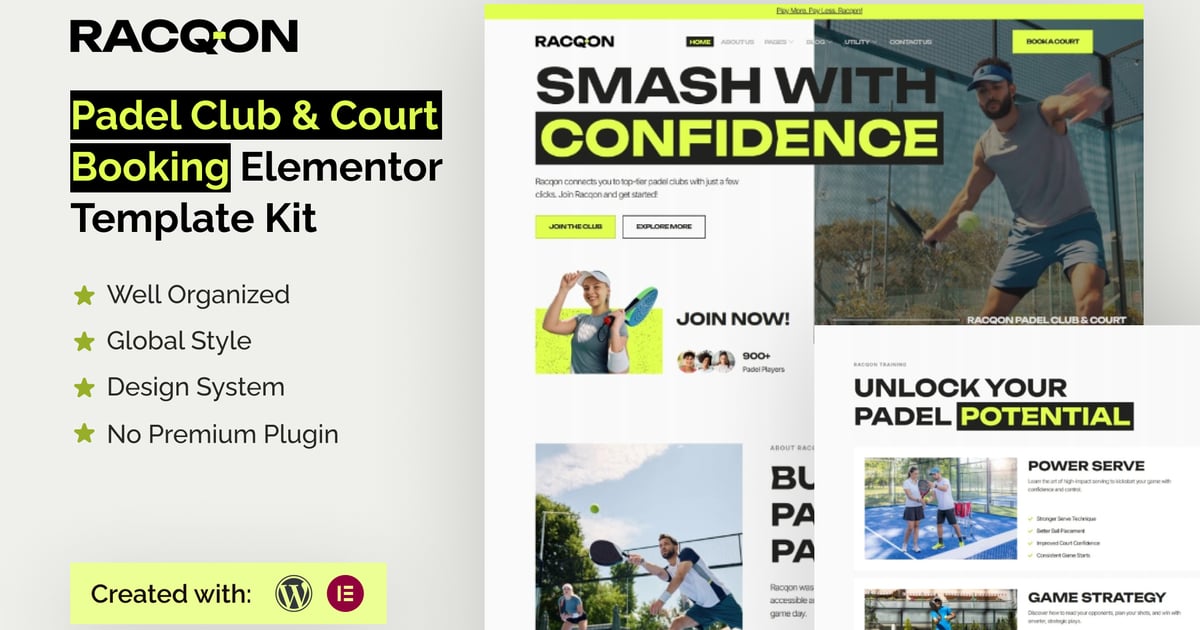 Introducing “Racqon” – the Elementor & WordPress Template Kit built for Padel Clubs and Court Booking businesses. Whether you run a sports facility, manage tournaments, or operate a membership-based club, Racqon provides all the tools you need to create a professional and engaging online presence. With 21+ pre-designed pages, this kit helps you launch a fully functional website quickly, without requiring coding knowledge.