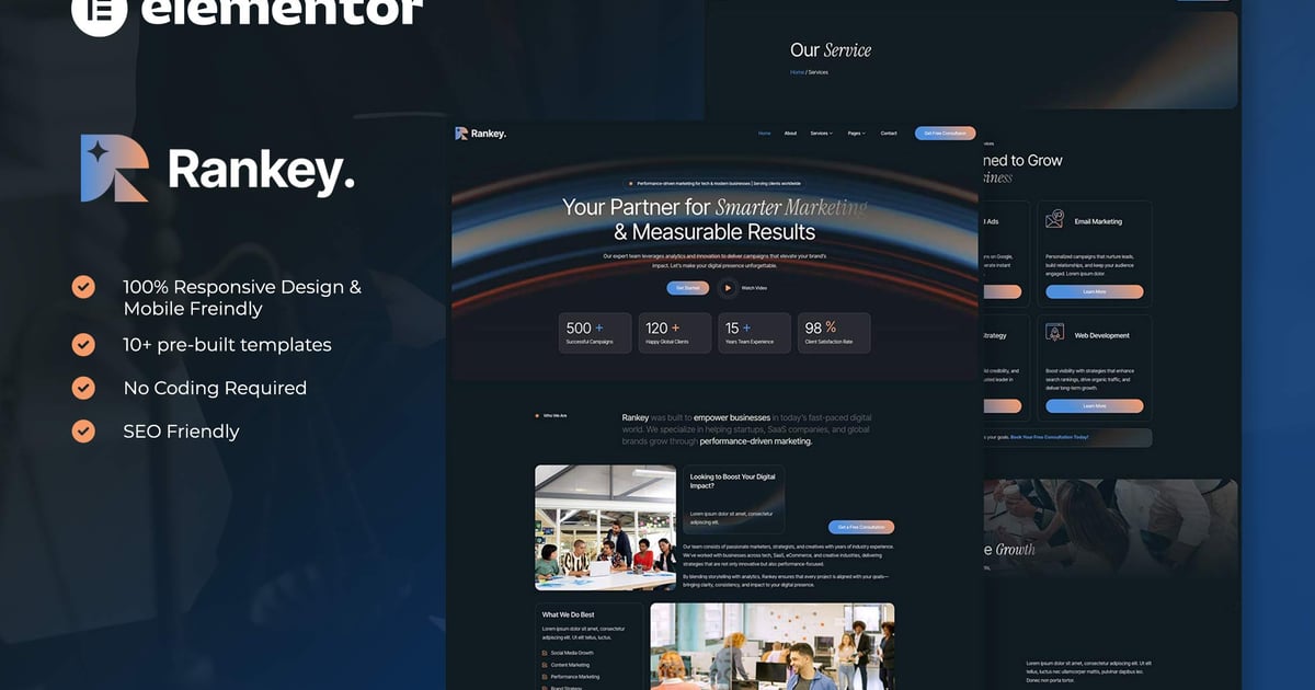 Rankey is a modern and creative Elementor Template Kit designed specifically for Digital Marketing Agencies, SEO Experts, Creative Studios, and Advertising Companies.