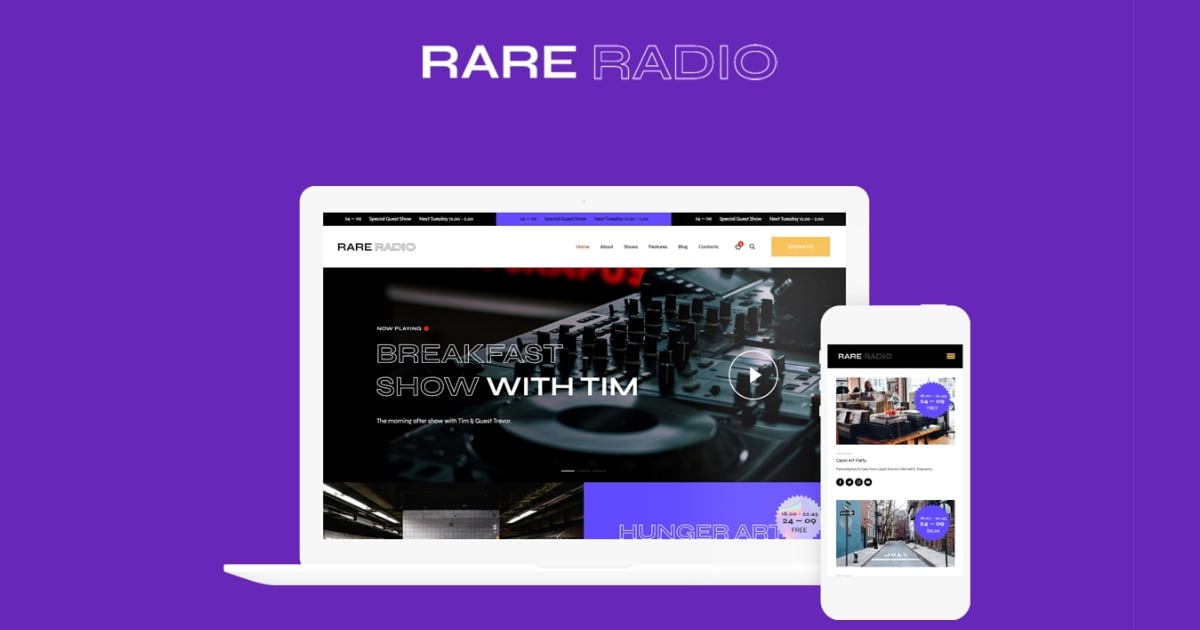 Rare Radio is an amazing colorful bright WordPress theme with the functional modern design. It is suitable for contemporary online radio, radio station company, music band, stylish dj, attractive singer, artist bureau, cultural events agency, and entertainment business firm websites.