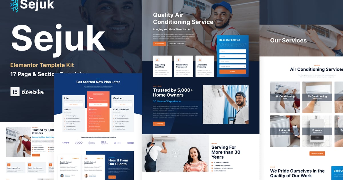 When you buy conditioner you will get a total of 17 of fully professional page & section templates. Sejuk Elementor template kit has been optimized for use with the free Hello Elementor theme but may be used with most themes that support Elementor.