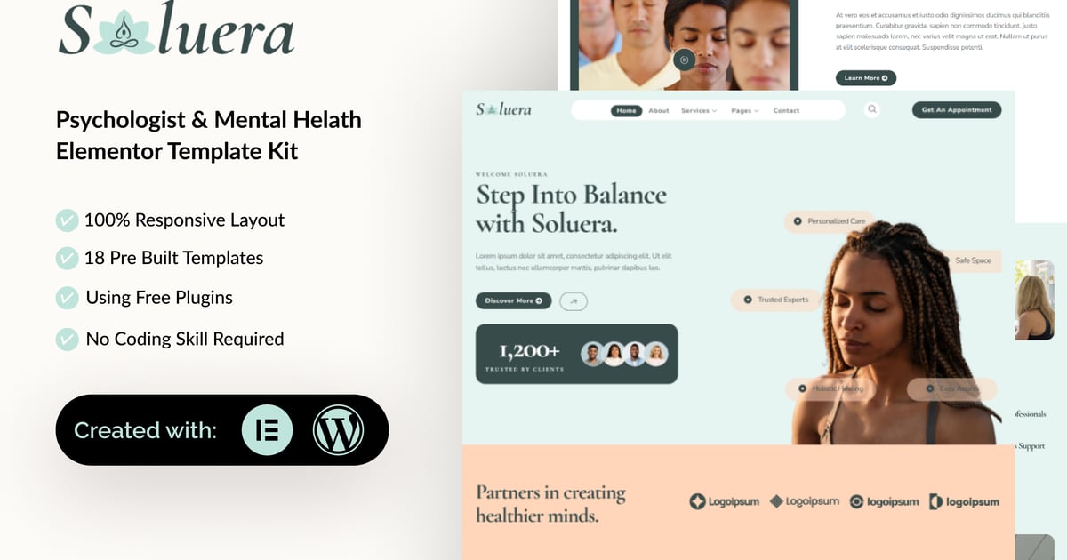 Soluera is a professional, modern and clean Elementor Template Kit designed for Psychologist & Mental Health Service. Built for WordPress, it seamlessly integrates with Elementor, enabling you to craft a professional website effortlessly—no coding skills required.