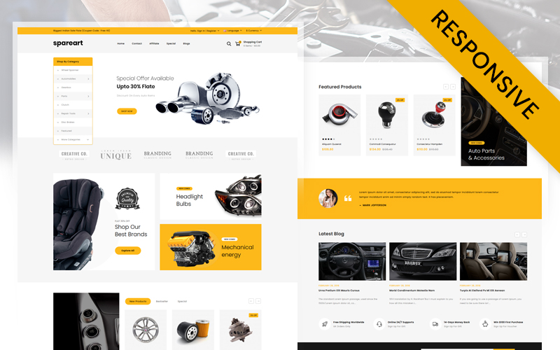 Spareart Automobile Store opencart fully responsive template is specially designed for Auto, Spare Parts, Tools, Bikes, Cars, Accessories, Equipment, minimal and multi purpose stores. This theme supports multiple languages and currency. This theme is looking good with colors combination. It is very nice with its clean and professional look. This OpenCart theme is suitable for small to medium business owners who want to sell their products online. We provide quick start theme installation package to install this theme like this template live demo.