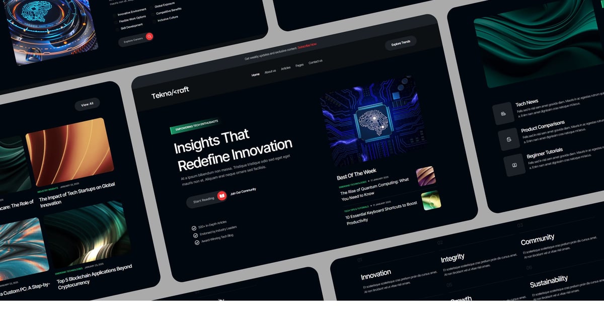 This template is optimized for fast loading speeds and offers essential blog functionalities, including detailed article pages, author sections, and interactive elements to enhance user engagement. Elevate your tech blog today with Teknocraft!
