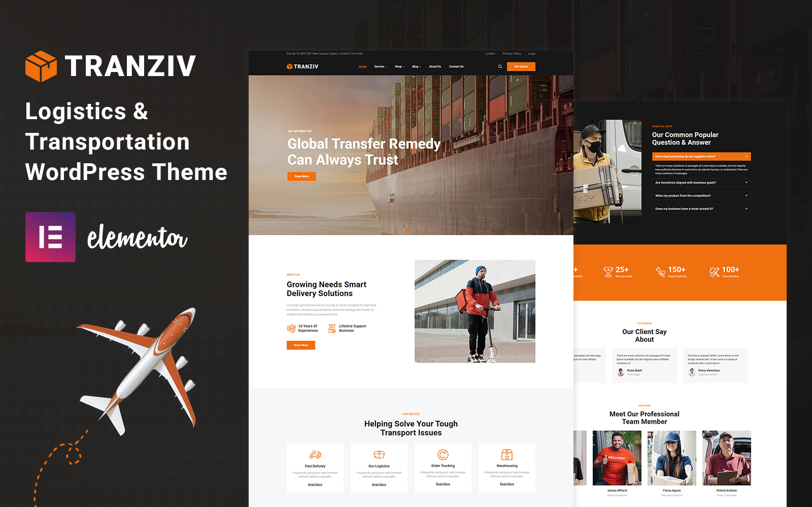 Tranziv: Logistics and Transportation A professional solution for freight, courier, and logistics companies is the WordPress theme. Its flexible and contemporary design guarantees seamless operation on every gadget. With features like pricing tables, contact forms, shipment status, and performance highlighting, it streamlines business processes and improves customer experience. Its WooCommerce and Elementor compatible makes customization simple and enables online booking. The Tranziv theme, which is SEO-optimized and loads quickly, enables logistics firms to increase visibility, foster confidence, and provide a flawless online experience for consumers all over the world.