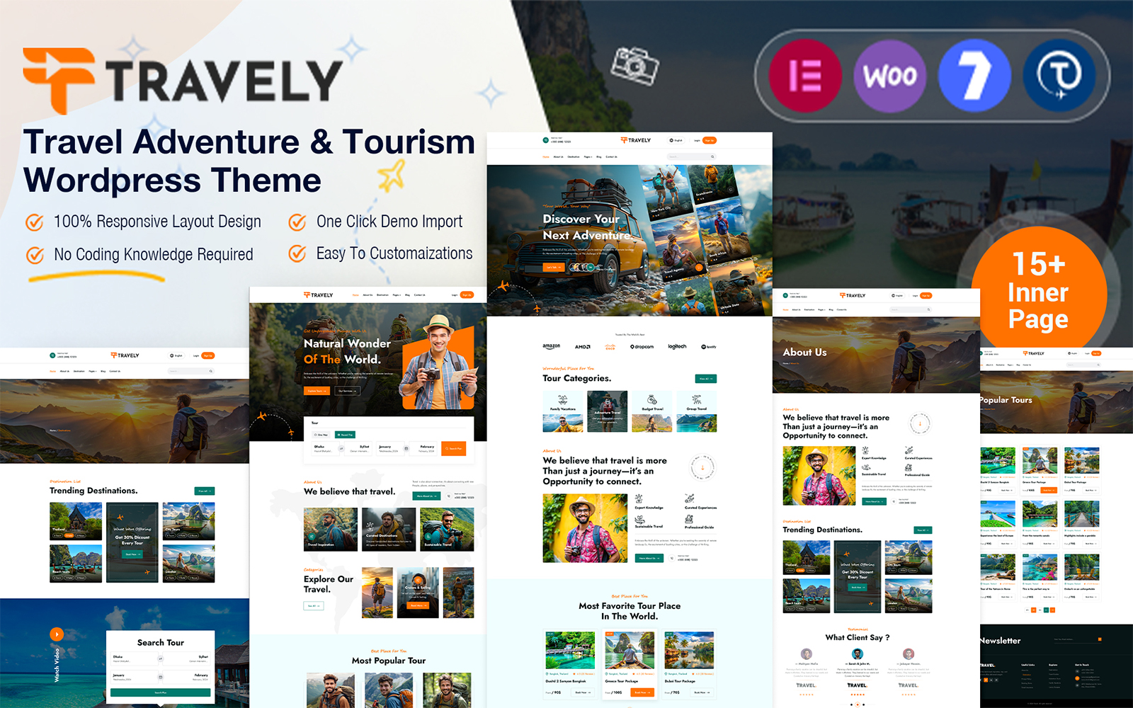 Travely – Tour Booking WordPress Theme is a superb choice for showcasing tours and destinations with style and organization. Designed for travel agencies, tour operators, holiday booking platforms, and booking companies, it includes an intuitive search feature that enhances user experience. This versatile theme is crafted specifically for the travel and tourism sector, making it a go-to option for professionals offering day trips, tour packages, vacation itineraries, city excursions, cruise adventures, hiking and camping experiences, and much more.