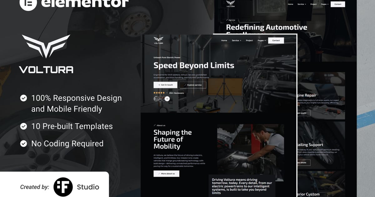 Voltura is a modern Elementor template kit built for automotive services, workshops, and repair businesses. Designed with the free version of Elementor, it’s easy to customize with drag & drop and no coding required.