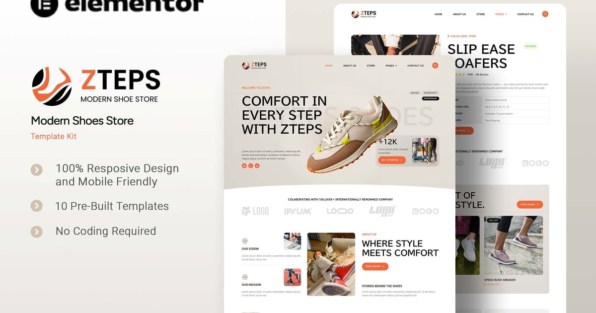 Zteps is an Elementor Template Kit for quickly and easily creating a full website in WordPress for your business featuring a modern and professional design. The kit features a fully compatible design system and professionally hand-picked images for a premium, branded head-start on your next project. Optimized for use with the free Hello Elementor theme, this kit is fine-tuned, fast-loading and fully responsive.